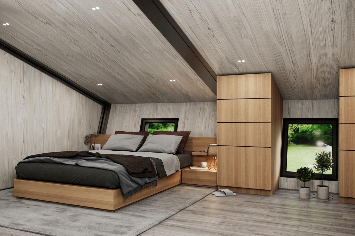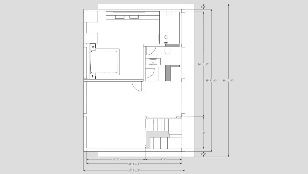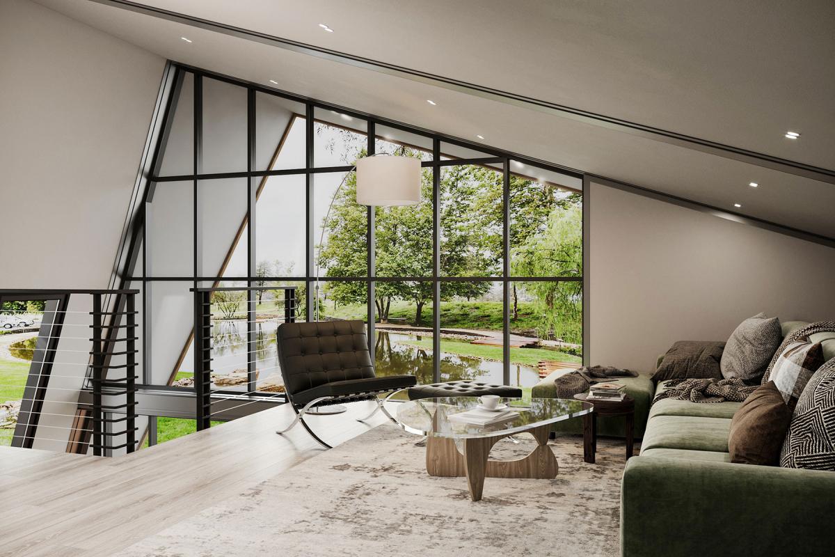 Second floor loft with wall stairway