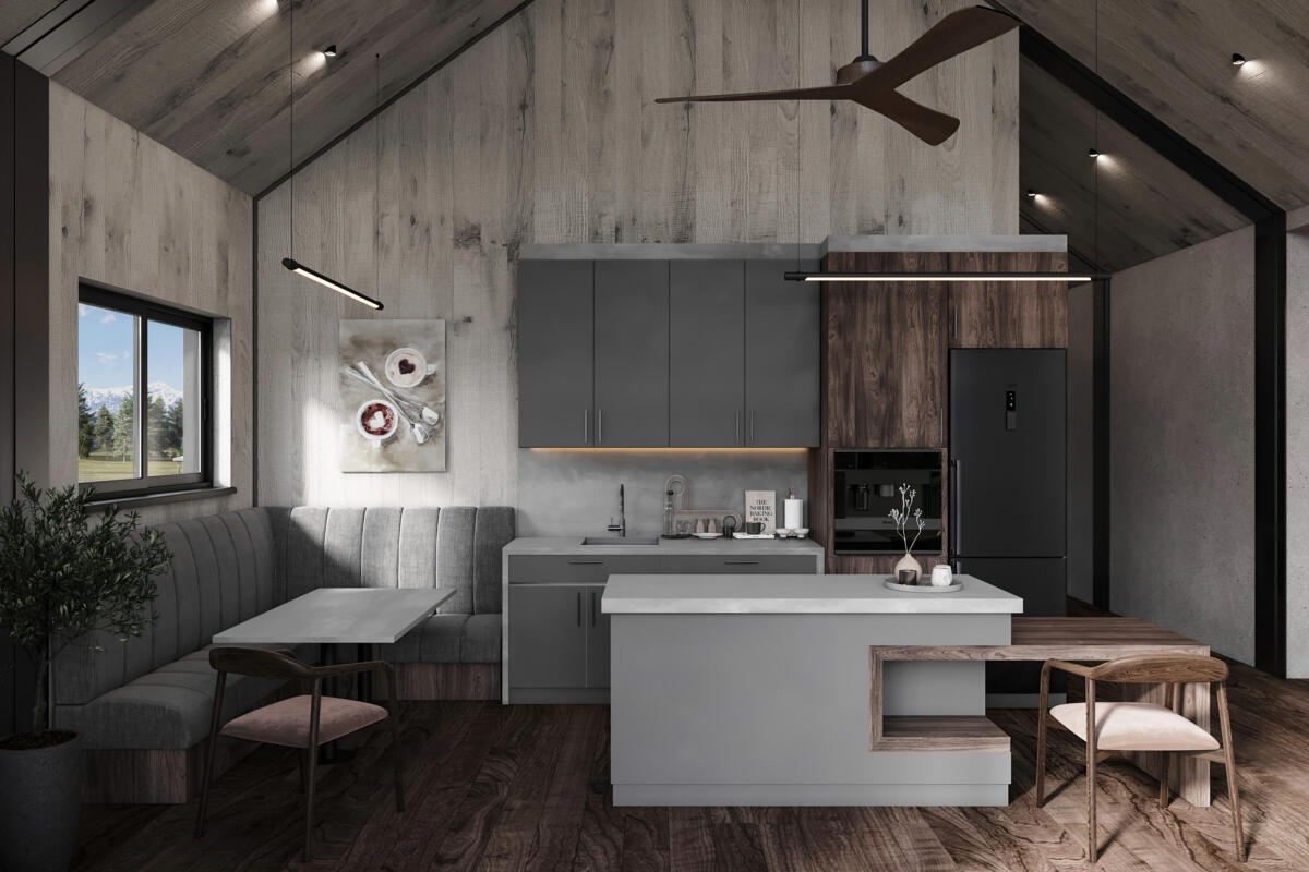 - Each Dining Booth: High/ low table for convertible bed and storage