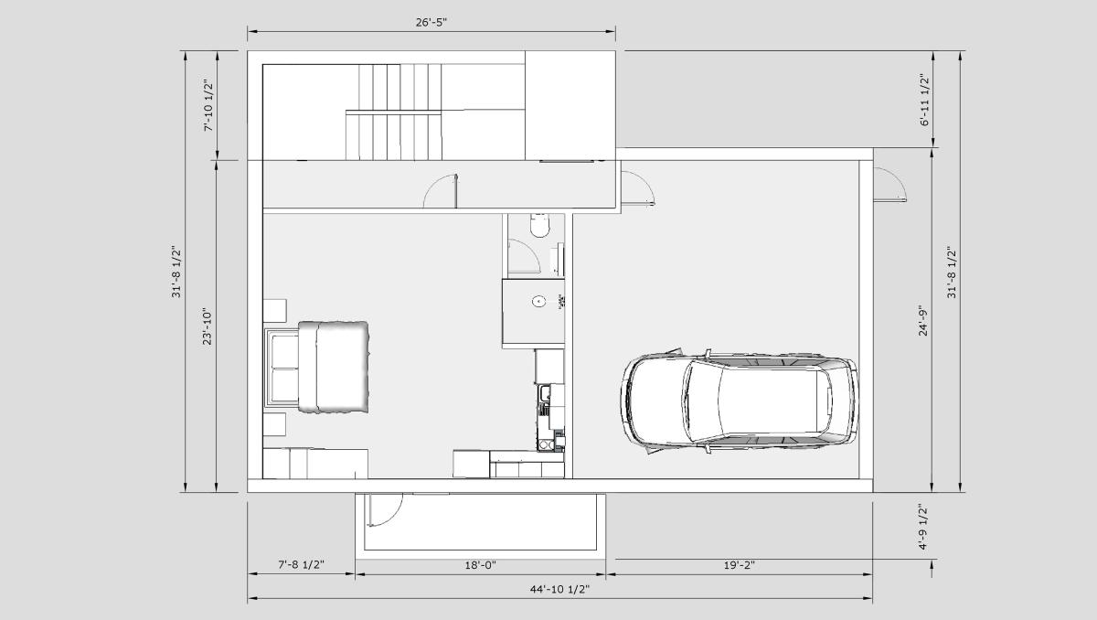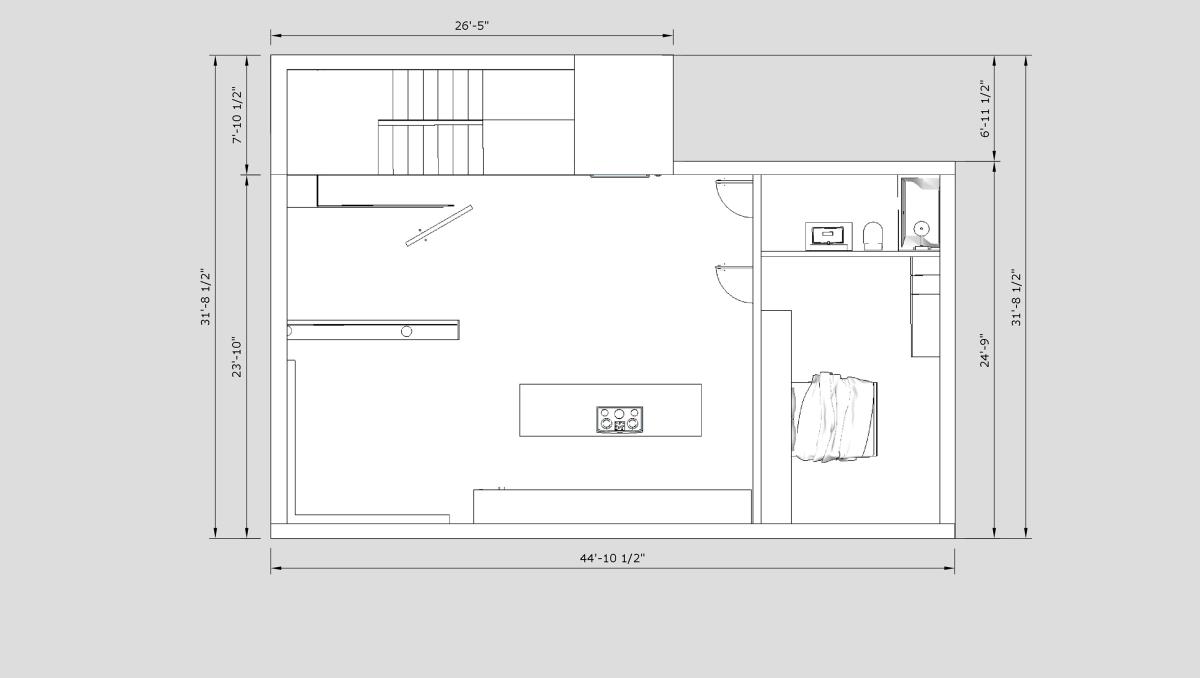 - First Floor 23” 10” W x 44’ 10 1/2” L