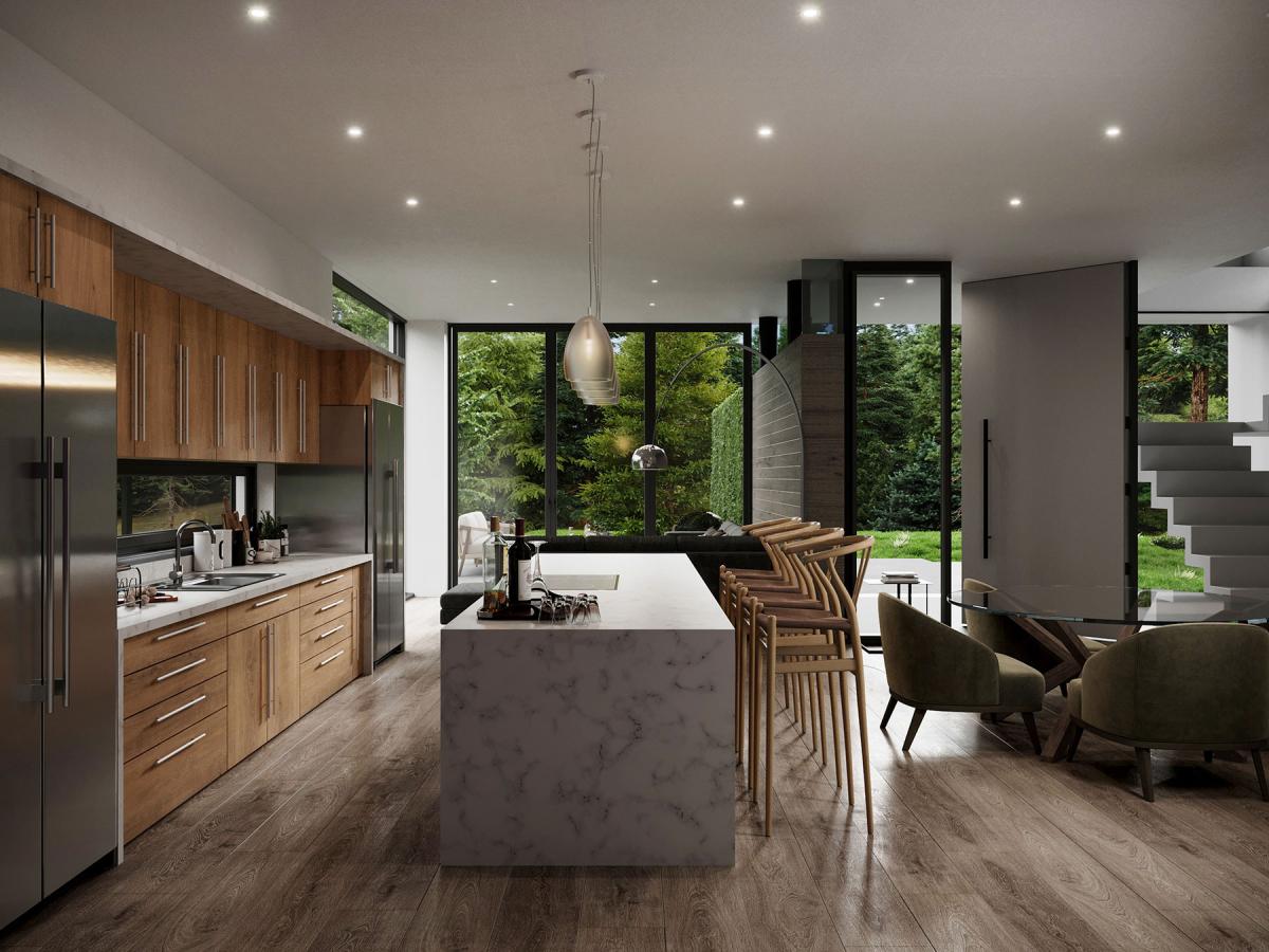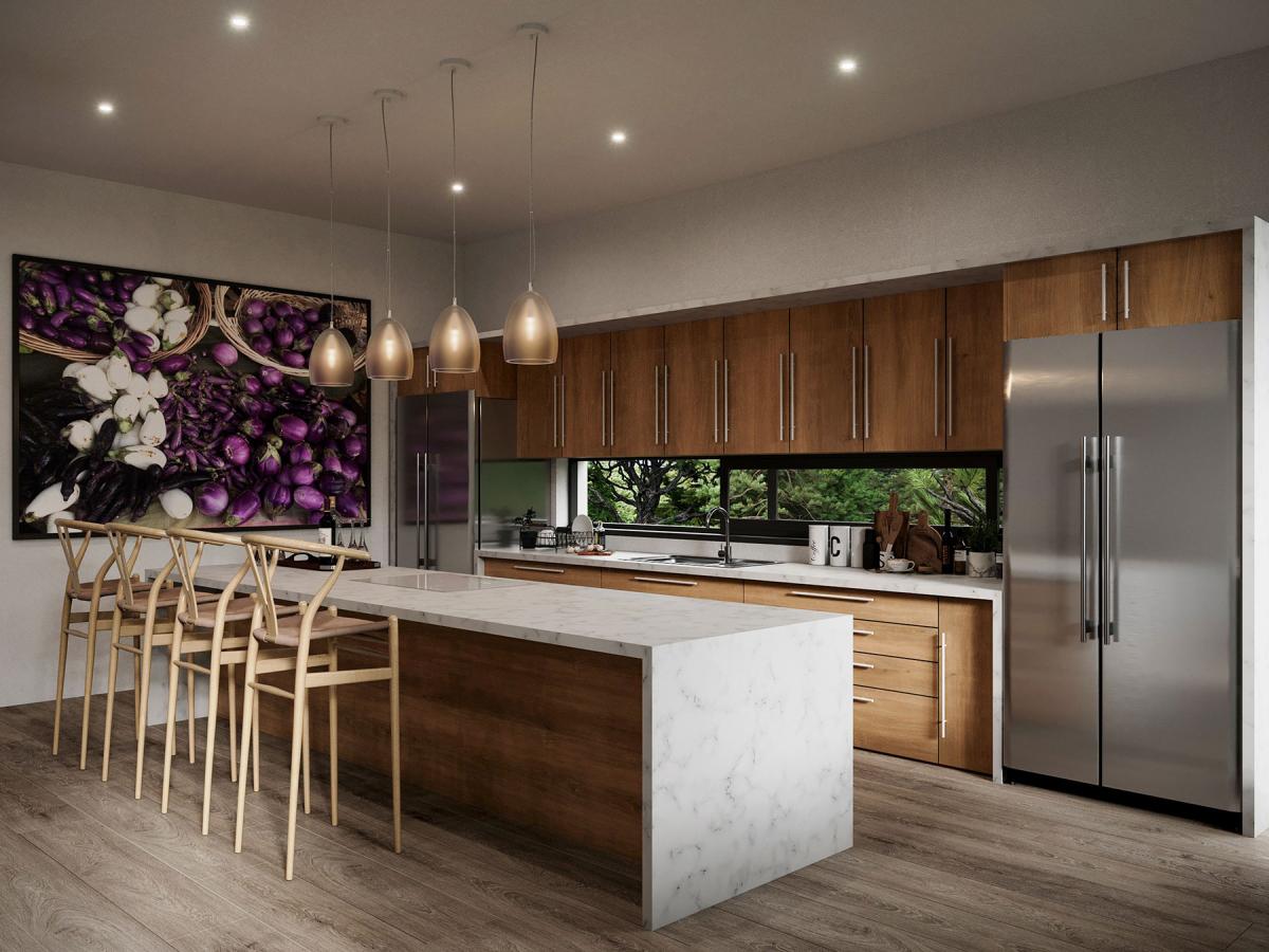 - Kitchen: Fully equipped including a combo microwave/convection oven, combo washer/dryer, full-sized refrigerator, dishwasher, and double induction cooktop, upper and lower cabinetry, sink and disposal