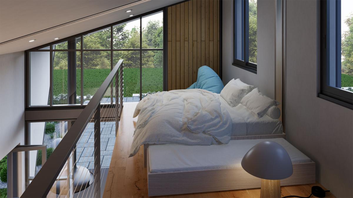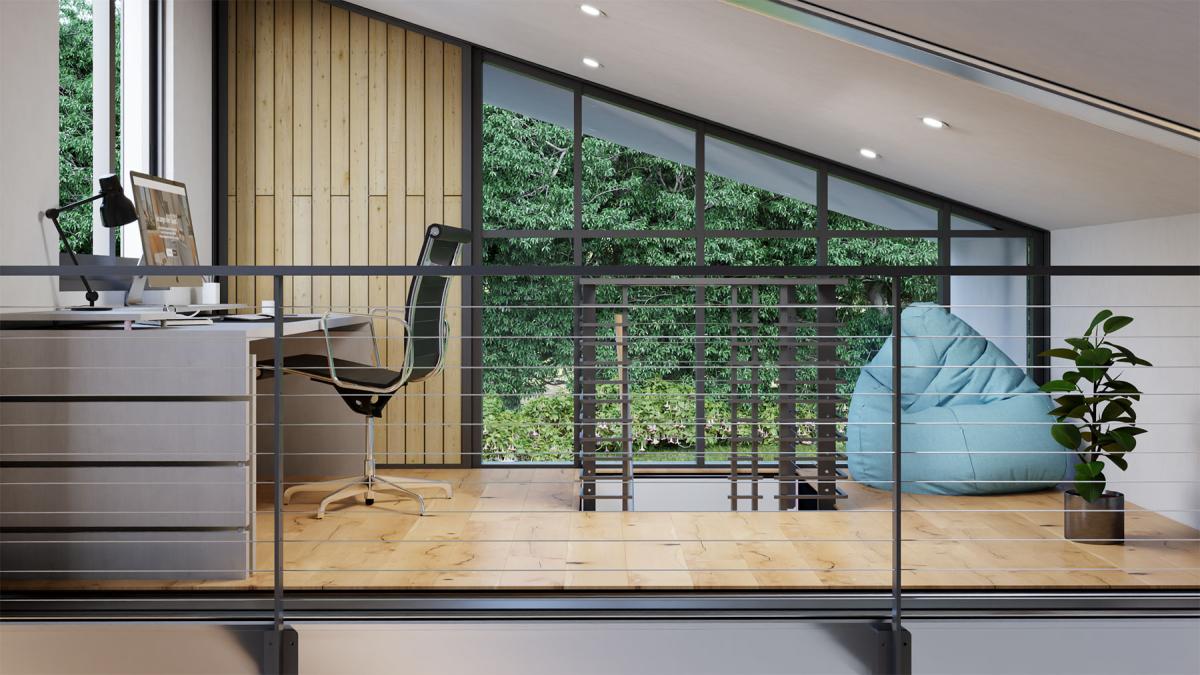 - Second floor loft with wall stairway