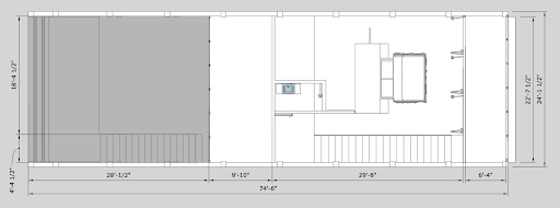 - Second Floor 18’ 4 1/2” W x 56 2 1/2” L
